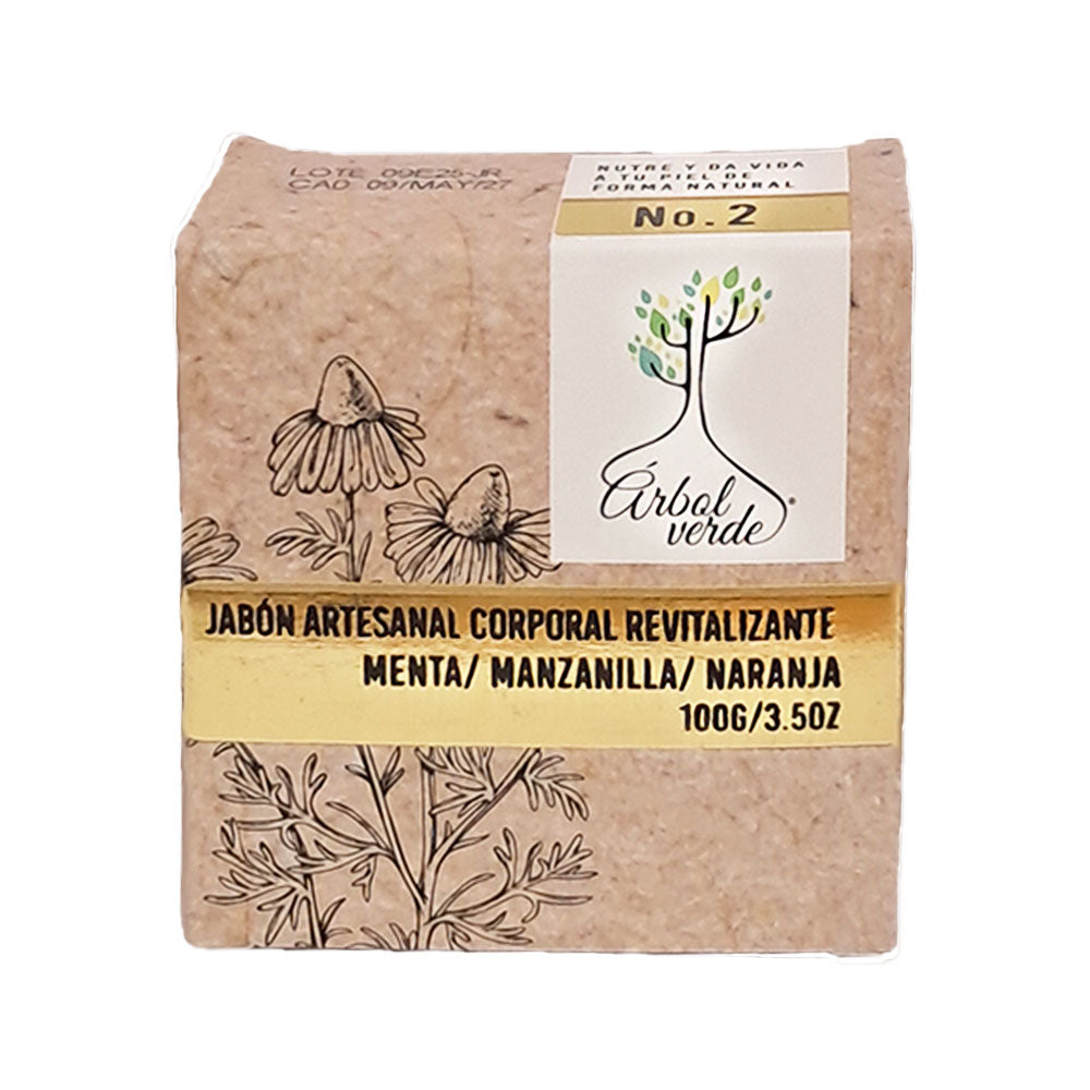 Nuestro Jabón en Barra Corporal Revitalizante está elaborado con activos naturales como menta, manzanilla y naranja. Esta combinación limpia profundamente la piel mientras la nutre, revitaliza y devuelve su energía natural.